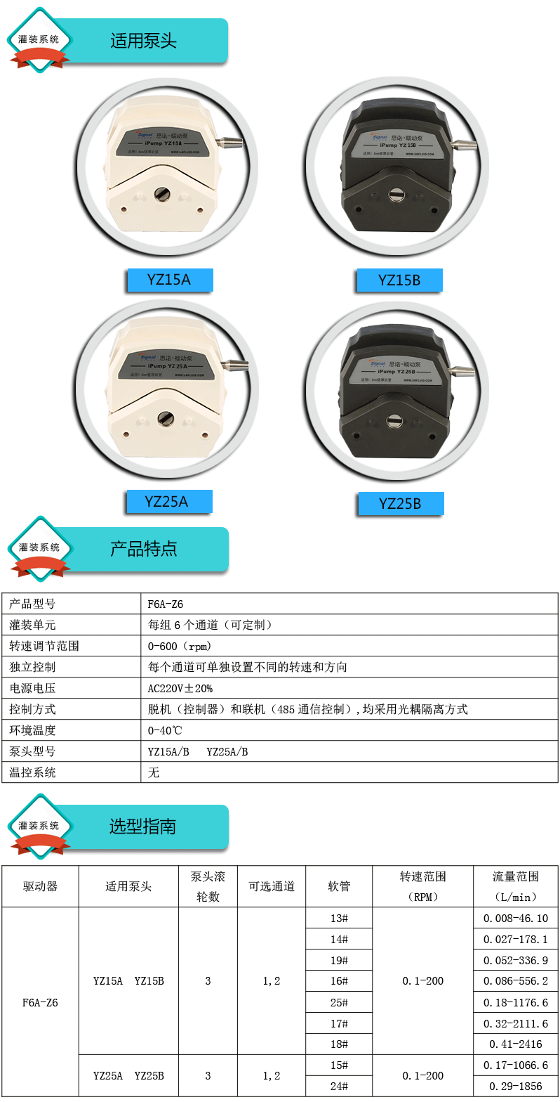 系統由6組基本通道一臺控制器組成,可安裝YZ15、YZ25泵頭